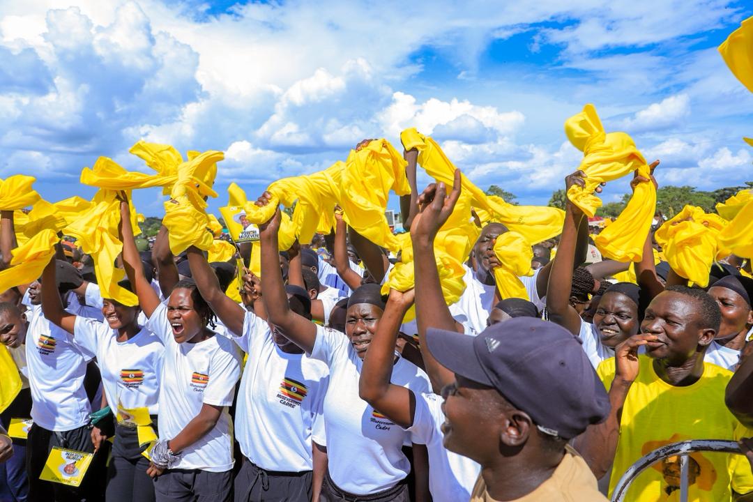 A sea of yellow filled Kaunda Grounds in Gulu City today as thousands of enthusiastic supporters turned up to welcome President Yoweri Kaguta Museveni, the National Resistance Movement (NRM) presidential flag bearer, during a campaign rally that underscored the party’s achievements in the Acholi sub-region.
